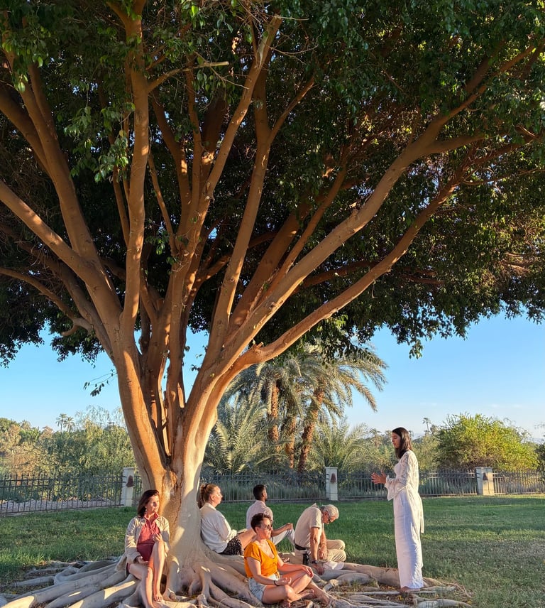 Dans cette continuité, j’ai également cofondé la retraite Résonance Égypte, un voyage initiatique en terre sacrée, conçu comme un espace d’éveil, d’activation et de transformation profonde. Cette retraite accompagne celles et ceux qui ressentent l’appel de l’Égypte, de leurs mémoires anciennes et de leur rôle dans l’émergence d’une conscience nouvelle.