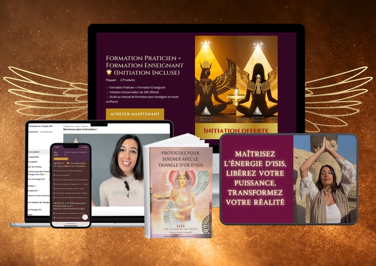 Plongez dans la sagesse d’Isis et laissez le Triangle d'Or activer en vous des fréquences élevées. Ce système énergétique, né des mystères sacrés de l’Égypte ancienne, ouvre votre canal énergétique et soutient votre processus de guérison intérieure.